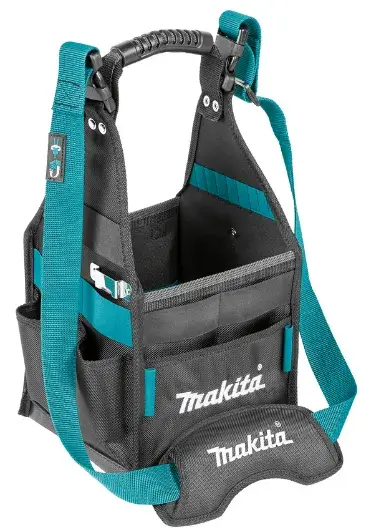 Multifunctional 4-sided Universal Tool Tote with 6 outer pockets in varying sizes 6 external elastic tool holders 8 internal elastic tool holders 14 drill bit loops Anti-slip webbing Padded shoulder strap for increased comfort