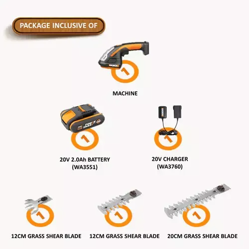 Lightweight and compact - 20V Worx Powershare System: The battery is compatible with other Worx 20V cordless garden and power tools